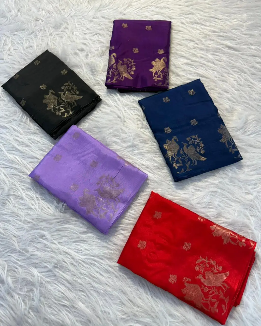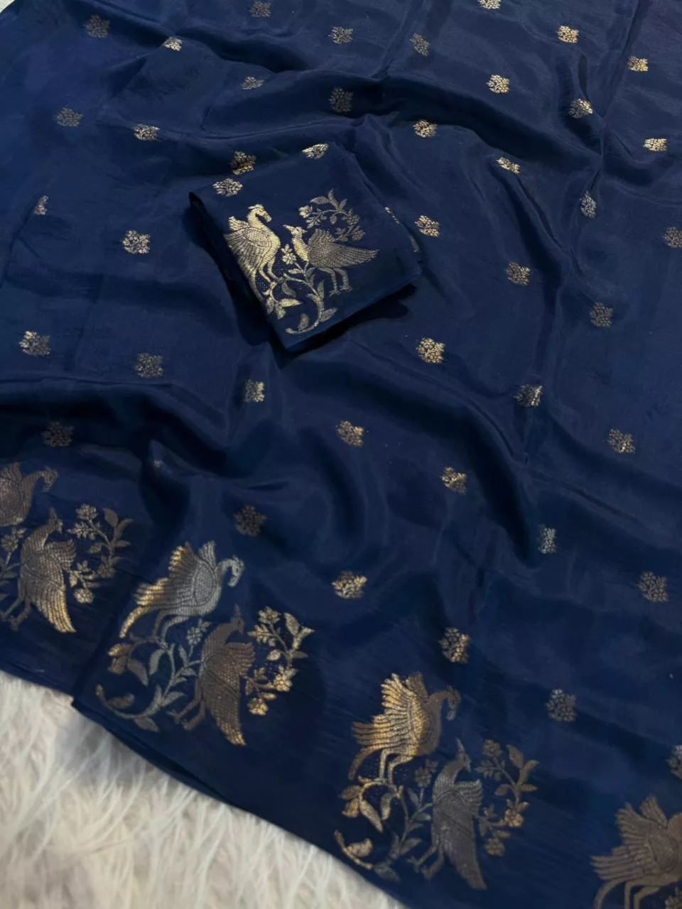 • Design: All-over small butti with zari bird figure border