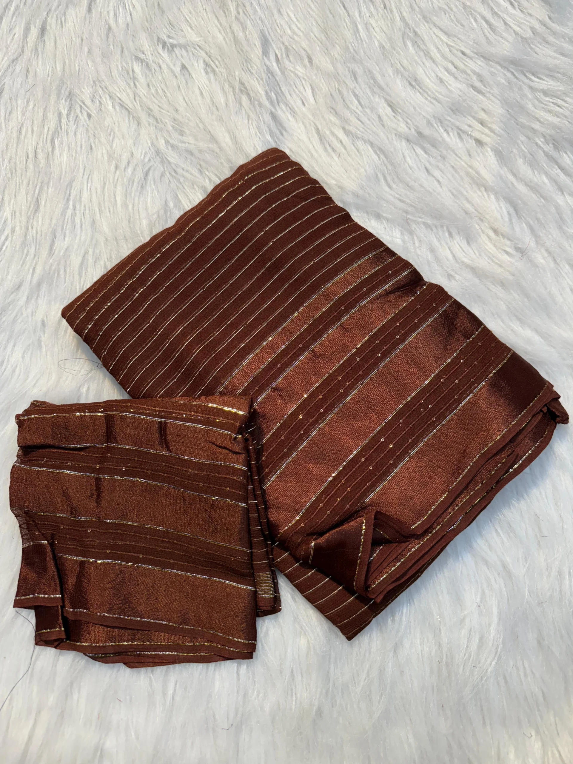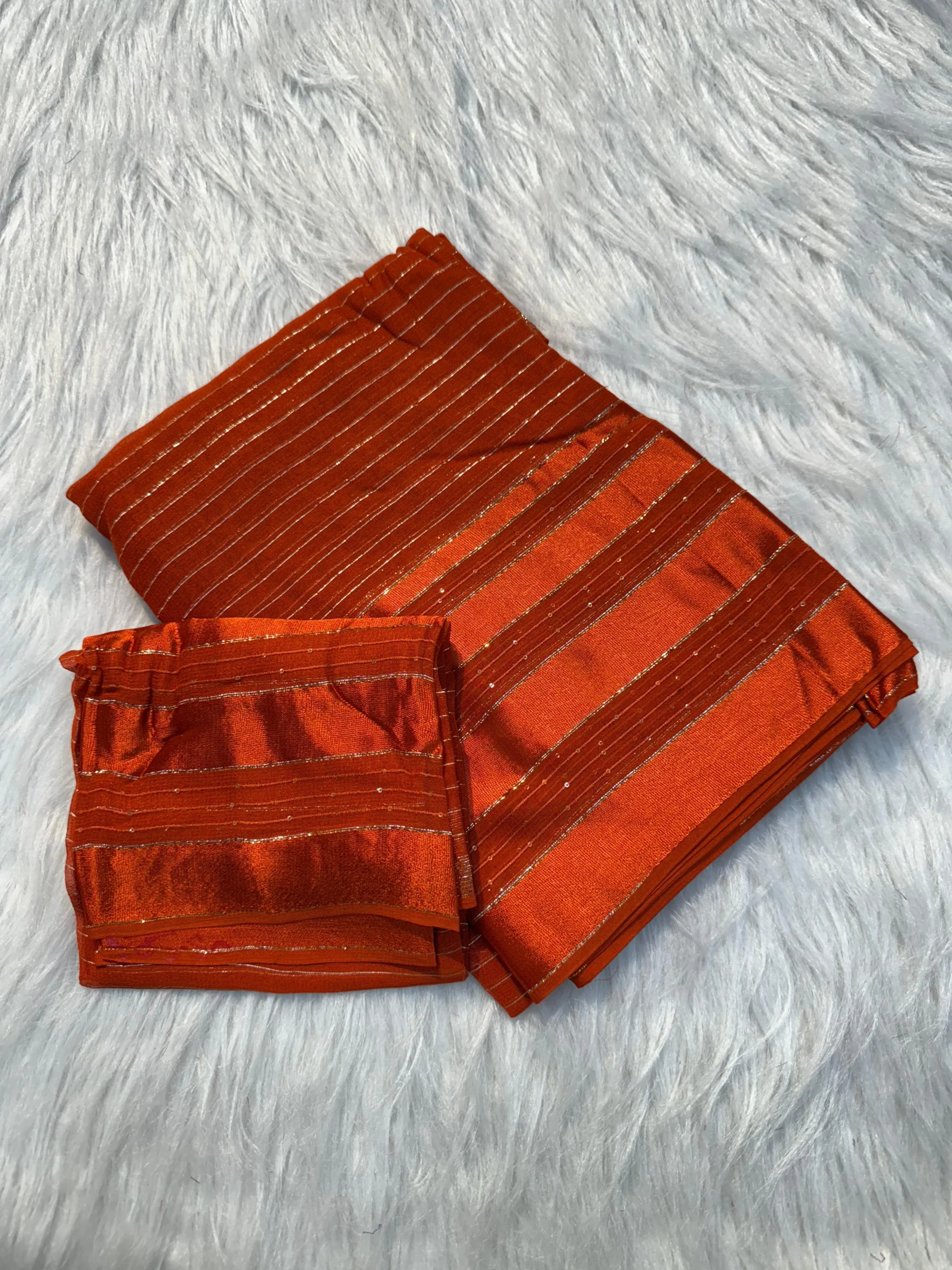 Elevate your collection with this Pure Soft Viscose Georgette Saree, designed with a delicate satin border and all-over sequin lining work that adds a graceful shimmer. Paired with a running blouse, this saree is lightweight, soft, and perfect for both celebrations and elegant gatherings.